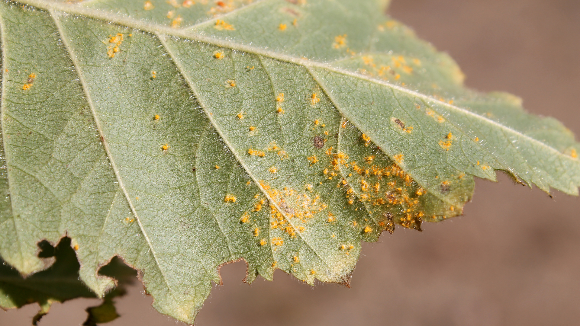 Plager på høsten kan skyldes bjørkrustsoppen (Melampsoridium betulinum), en sopp som angriper bjørkebladene med soppsporer gjennom åpninger på undersiden av bjørkebladet. Den legger seg blant annet som gult støv på innsjøer og fjorder, klesvask og biler. Utbredelsen av soppen vil variere fra år til år, avhengig av vær og klima. Det er typisk at plagene merkes spesielt godt ved tur i skog og mark samtidig som et gult støv kan ses på vannet.