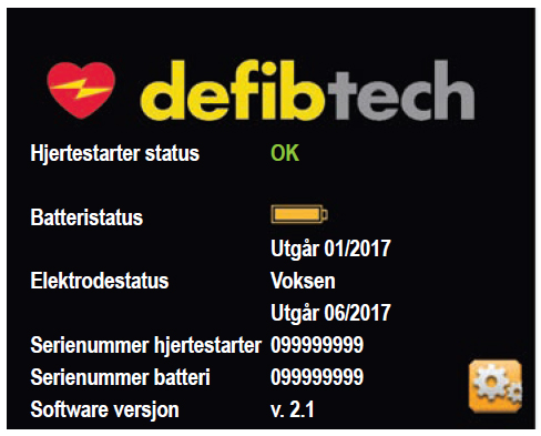 Hvis selvtesten bestås: Enheten vil si og vise: “Hjertestarter OK”