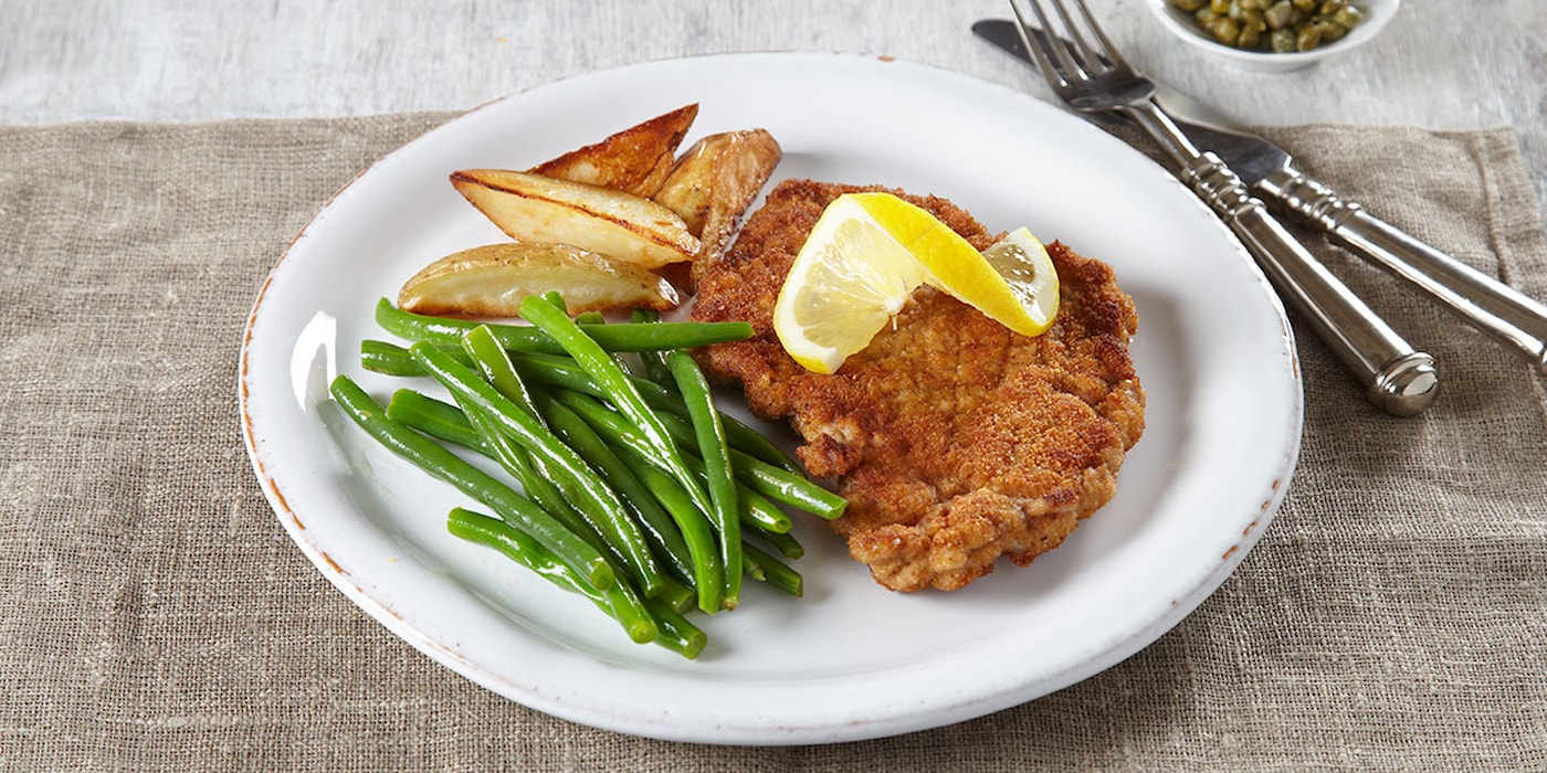 - Gjør klar bønnene slik at de bare kan has i kokende vann rett før schnitzlene er ferdig.