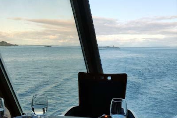 Den 19. april 2019 startet restaureringen av skipet. Og sommeren 2021 åpnet museet. Vi besøkte skipets kafe for en bedre lunsj. Så gikk vi over på hurtigruteskipet MS Trollfjord som skulle ta oss inn Trollfjorden og videre til Svolvær. Kl. 17.00 hadde vi felles middag, dessert og kaffe i skipets restaurant. Middagen bestod av buffet med masse forskjellig retter. Det var et supert tilbud som passet alle med og uten allergi. Dette var noe vi måtte få tilrettelagt før vi bestilte turen.