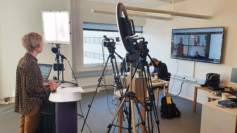 Vi produserer webinarer fra eget studio. Hvis du deltar her i studio, tar vi alt det praktiske da. Og under øving i forkant, hvis det er behov for det.